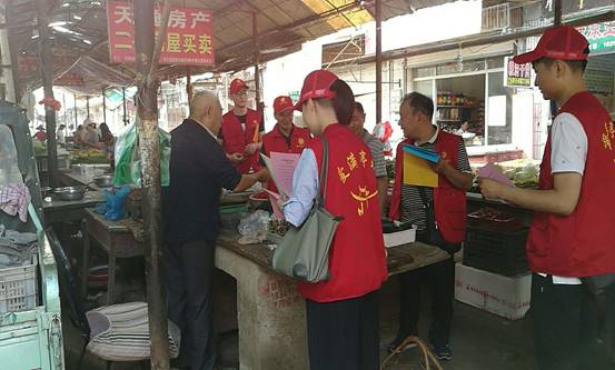 環(huán)保志愿者走進(jìn)農(nóng)貿(mào)菜場進(jìn)行宣傳