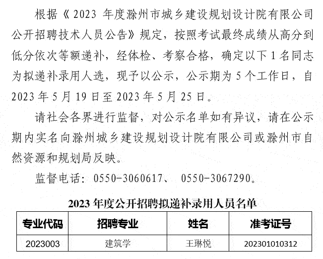 2023年滁州市城鄉(xiāng)建設(shè)規(guī)劃設(shè)計院有限公司